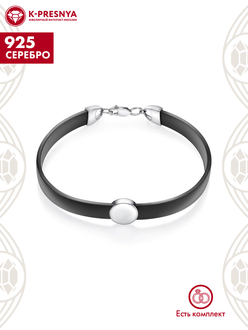 Женский браслет выполнен из каучука, с минималистичной накладкой из серебра 925°. Его с уверенностью можно назвать универсальными, так как прекрасно сочетается с различными видами одежды. Браслеты из каучука гипоаллергенны.