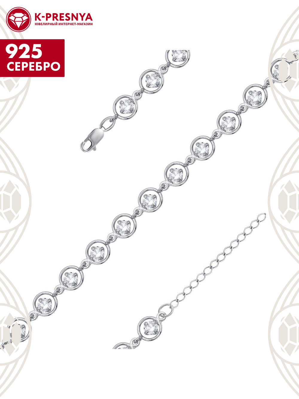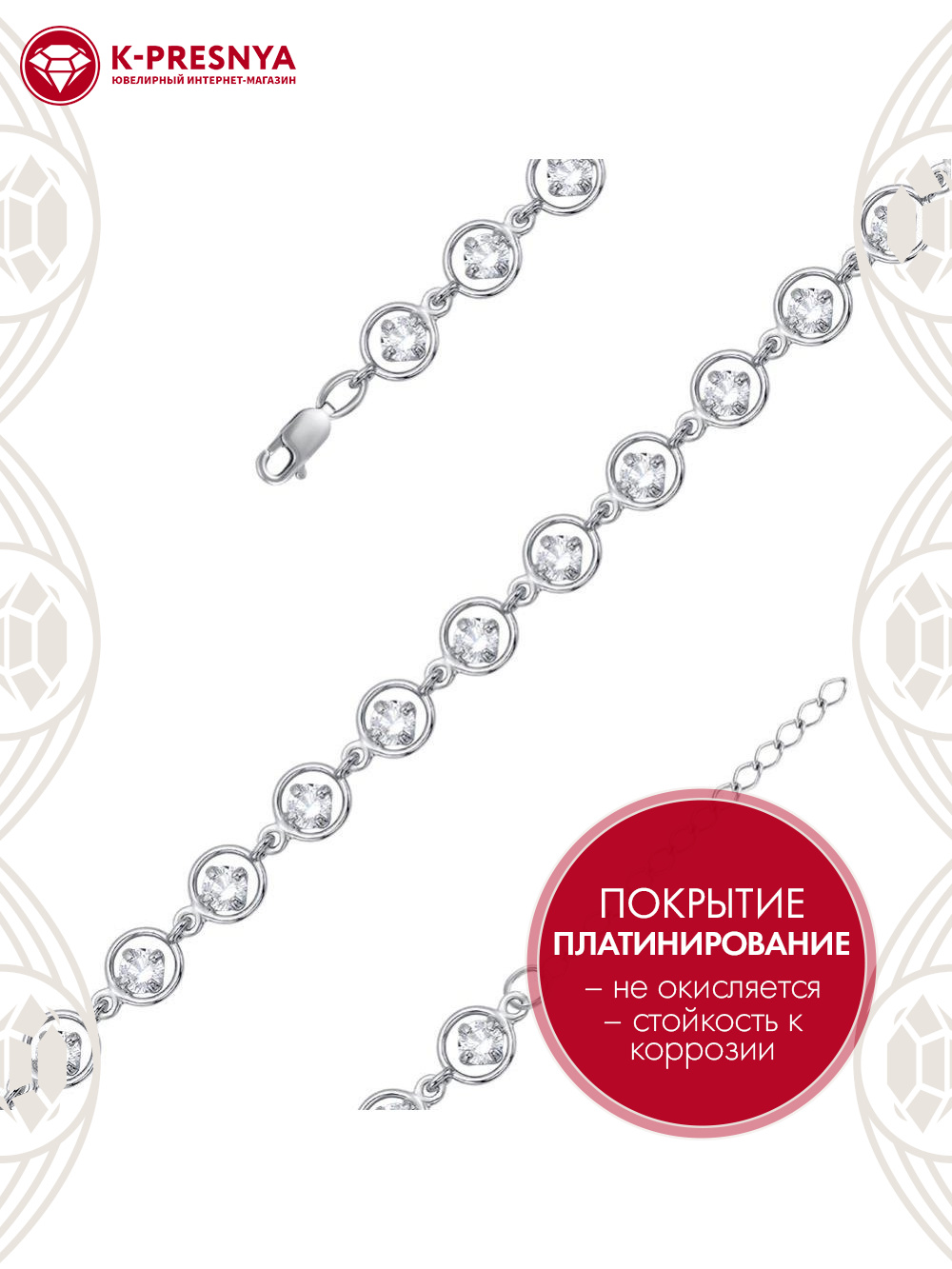 Браслет серебро 925 пробы, покрытие - платинирование, вставка - фианит (недрагоценный камень)