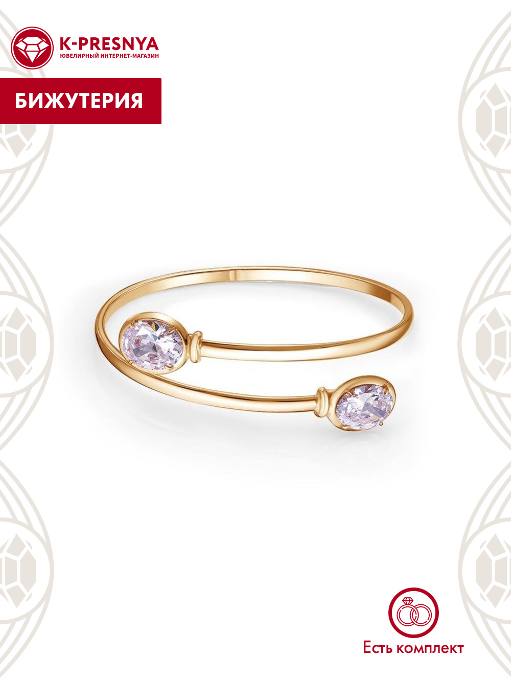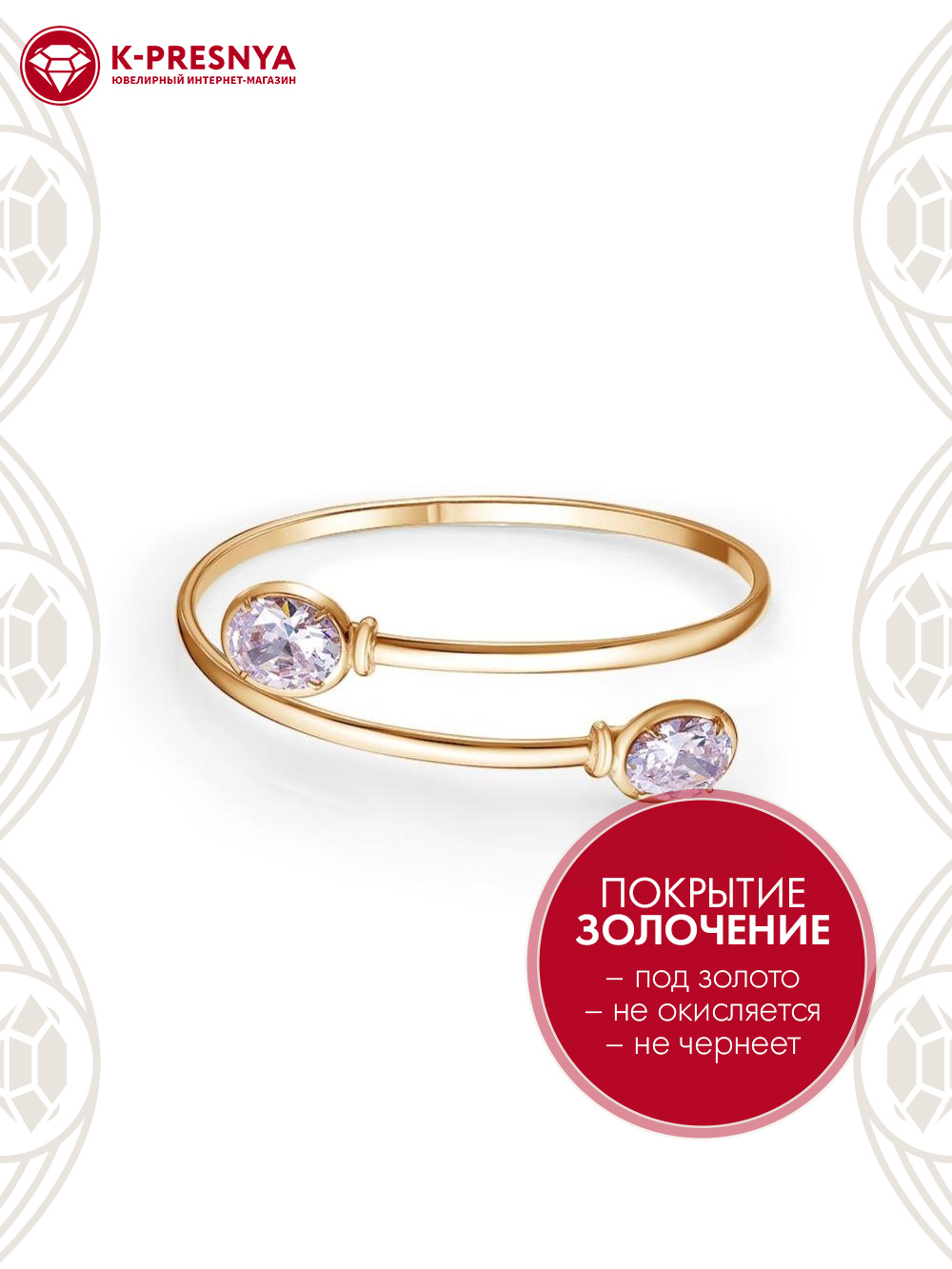 Браслет бижутерия, покрытие - золочение, вставка - фианит (недрагоценный камень)