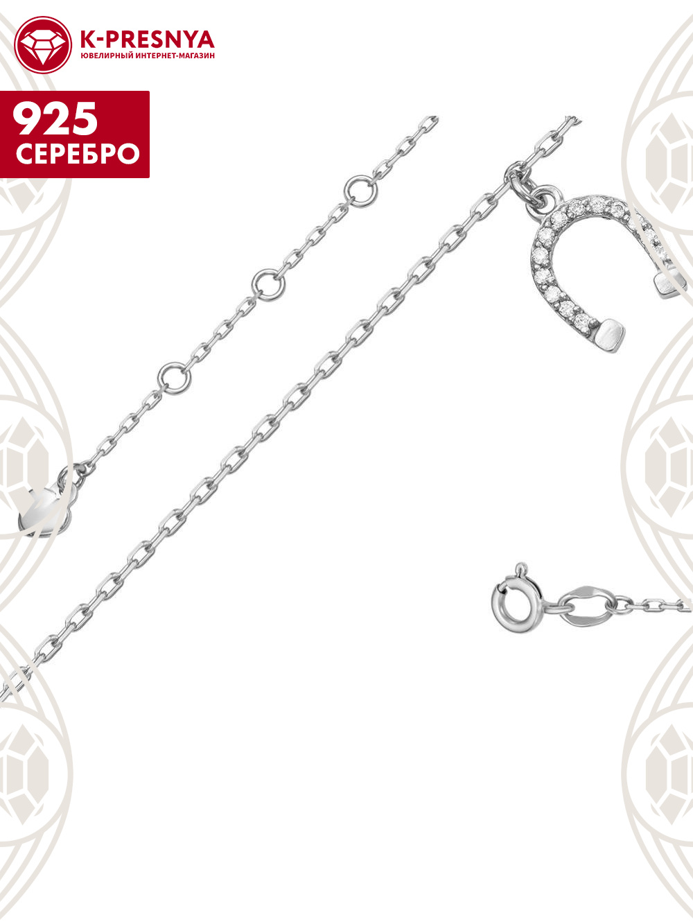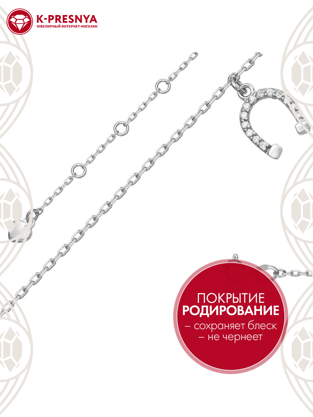 Браслет с дополнительной цепочкой 3 см, которая позволяет регулировать размер.