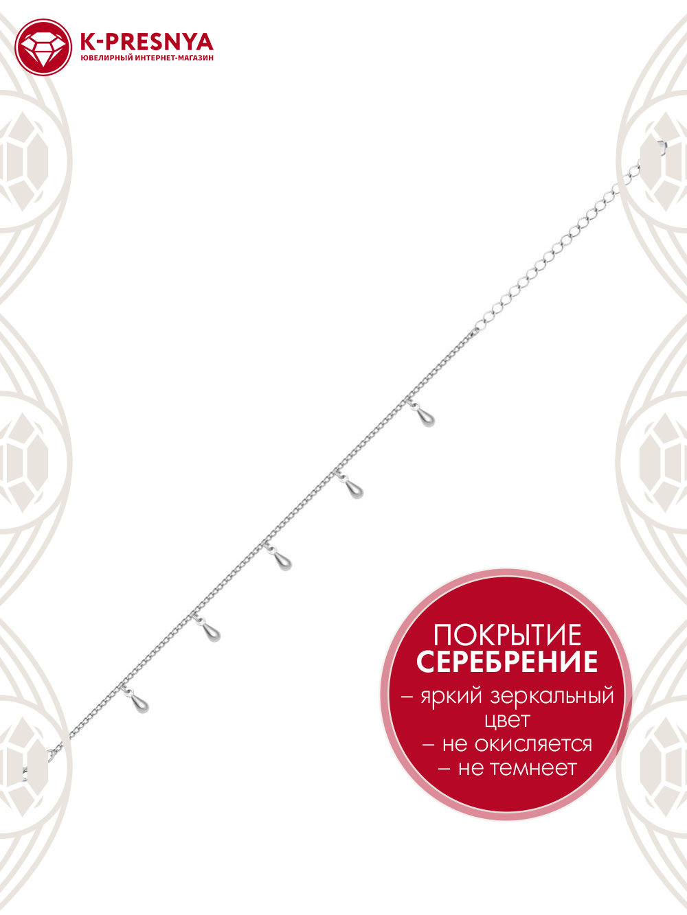 Браслет с дополнительной цепочкой 50 мм, которая позволяет регулировать размер