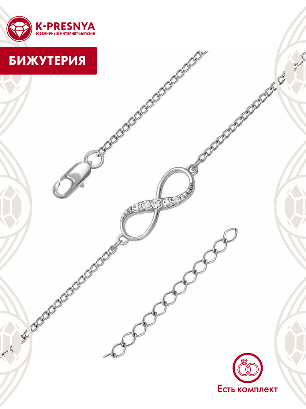 Браслет бижутерия, покрытие - серебрение, вставка - стекло ювелирное preciosa