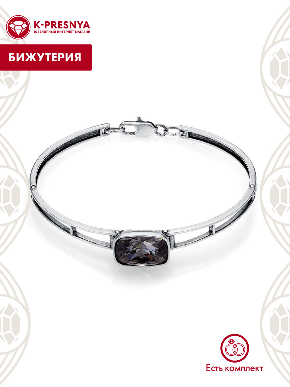 Браслет бижутерия, покрытие - серебрение с оксидированием, вставка - ювелирное стекло европейской огранки