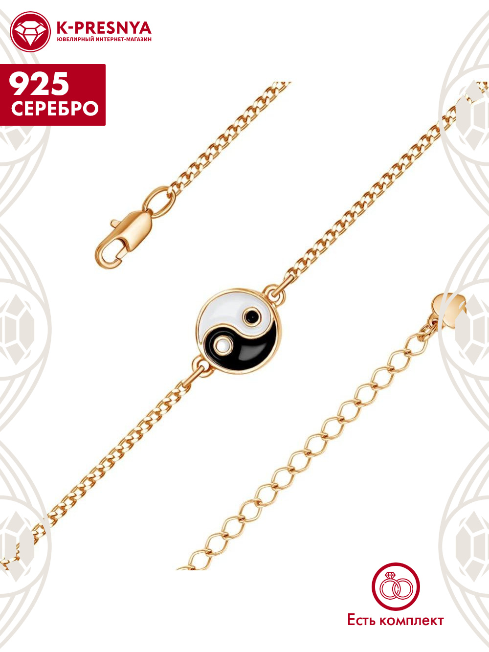 Браслет серебро 925 пробы, покрытие - золочение, отделка - эмаль, без вставок