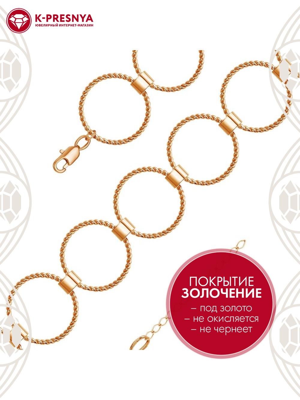 Браслет серебро 925 пробы, покрытие - золочение, без вставок
