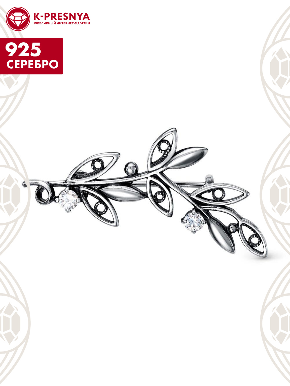 Брошь серебро 925 пробы, покрытие - оксидирование, вставка - фианит (недрагоценный камень)
