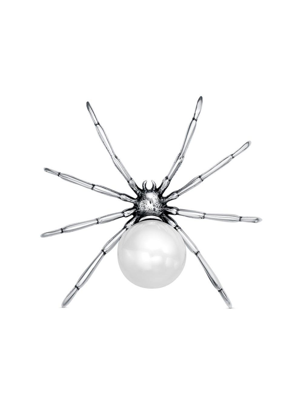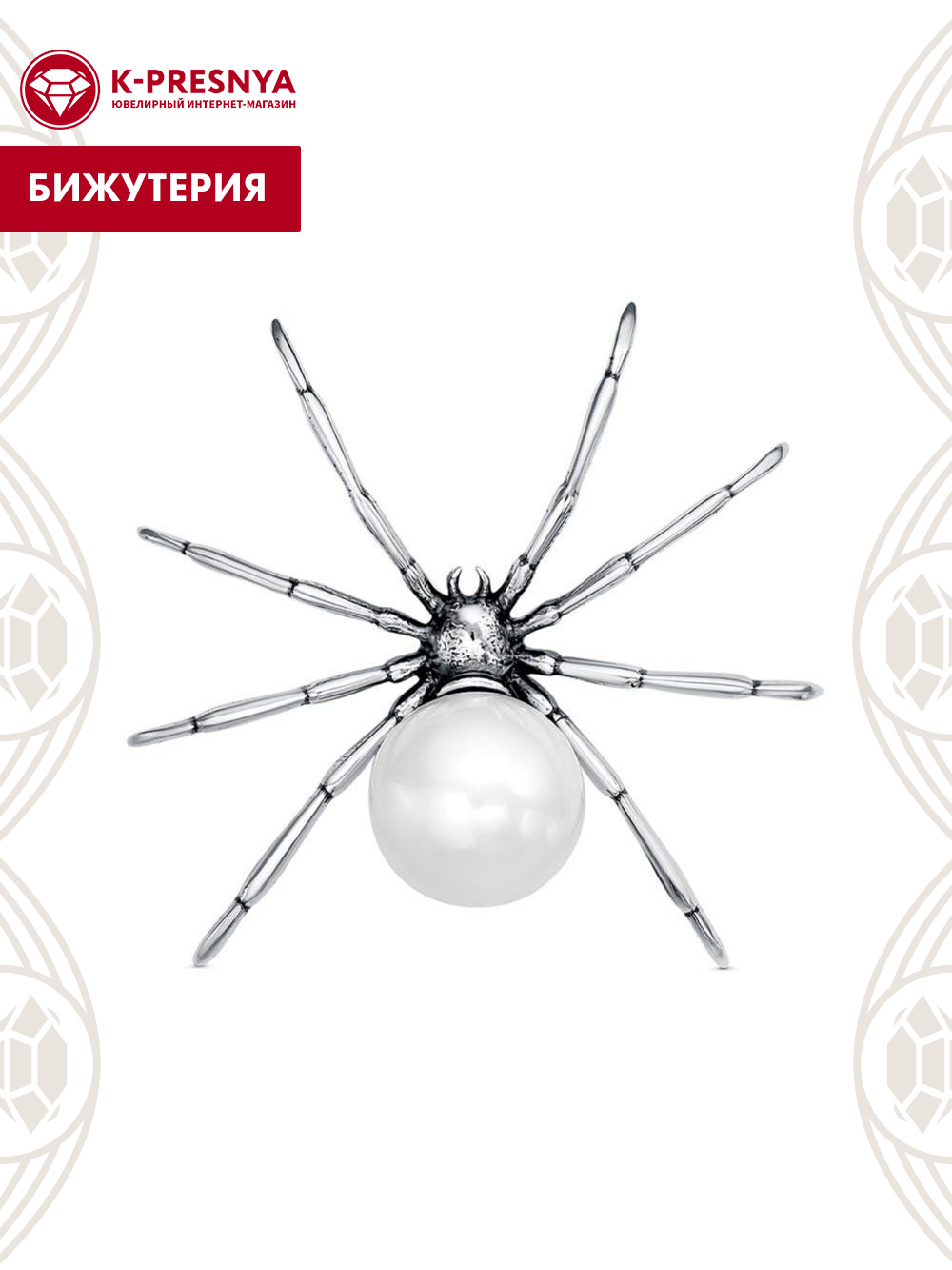 Брошь бижутерия, покрытие - серебрение с оксидированием, вставка - имитация жемчуга