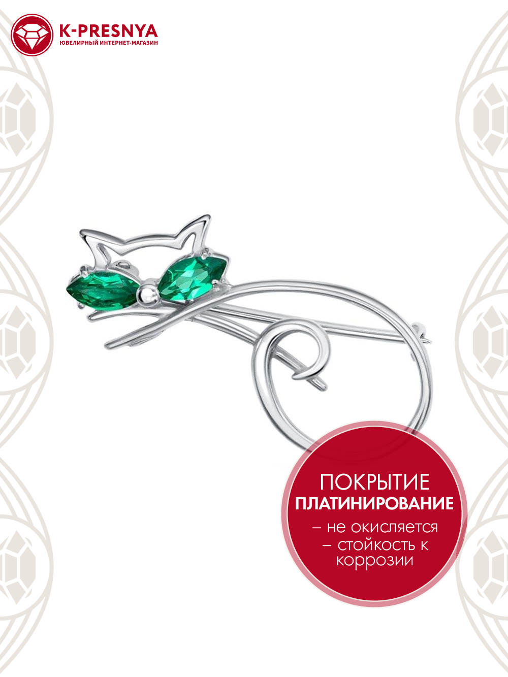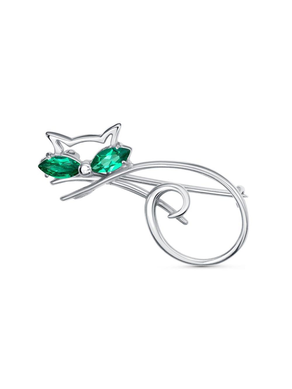 Брошь серебро 925 пробы, покрытие - платинирование, вставка - искусственная шпинель