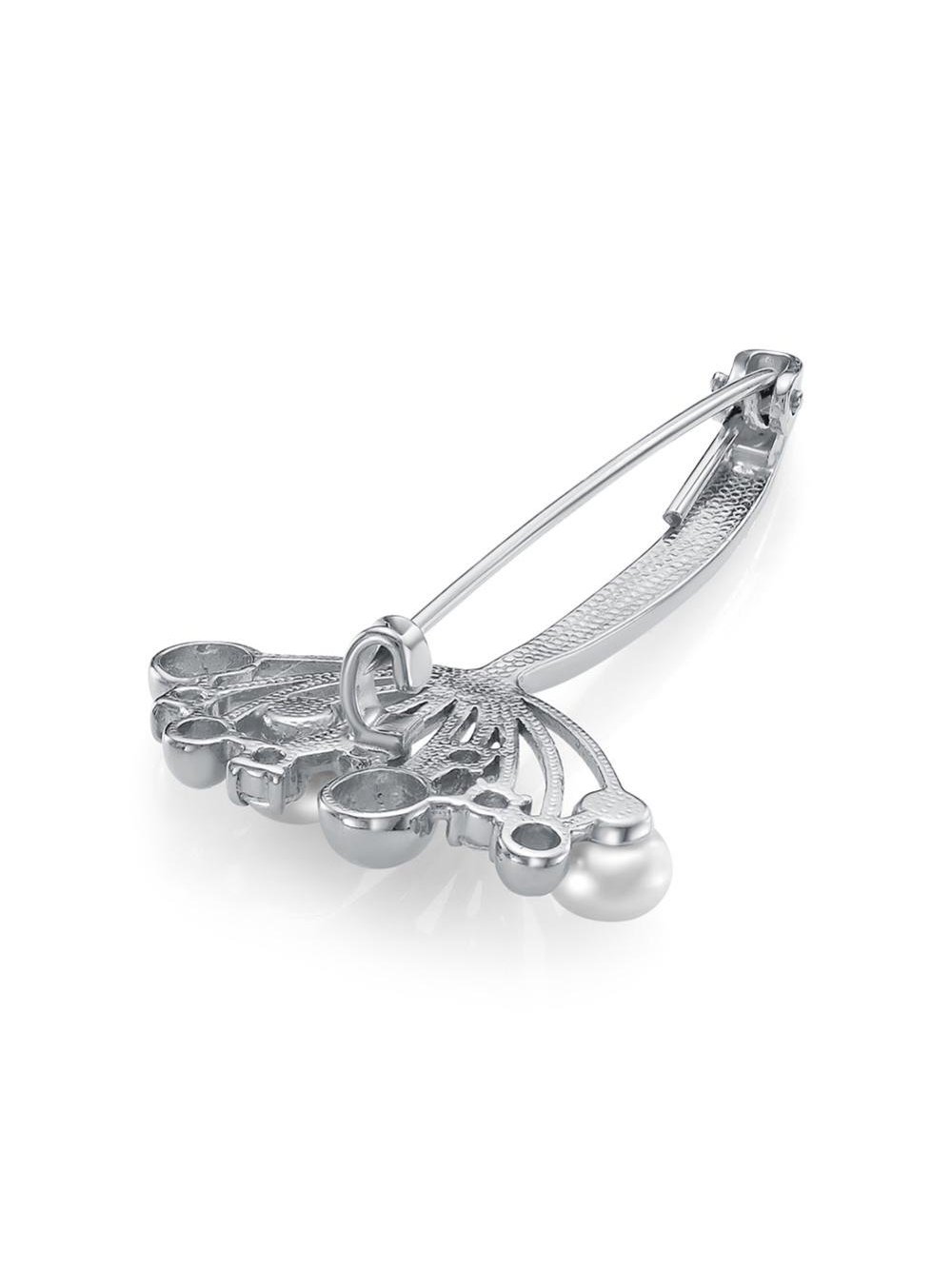 Брошь бижутерия, покрытие - платинирование, вставка - культивированный жемчуг, фианит (недрагоценный камень)