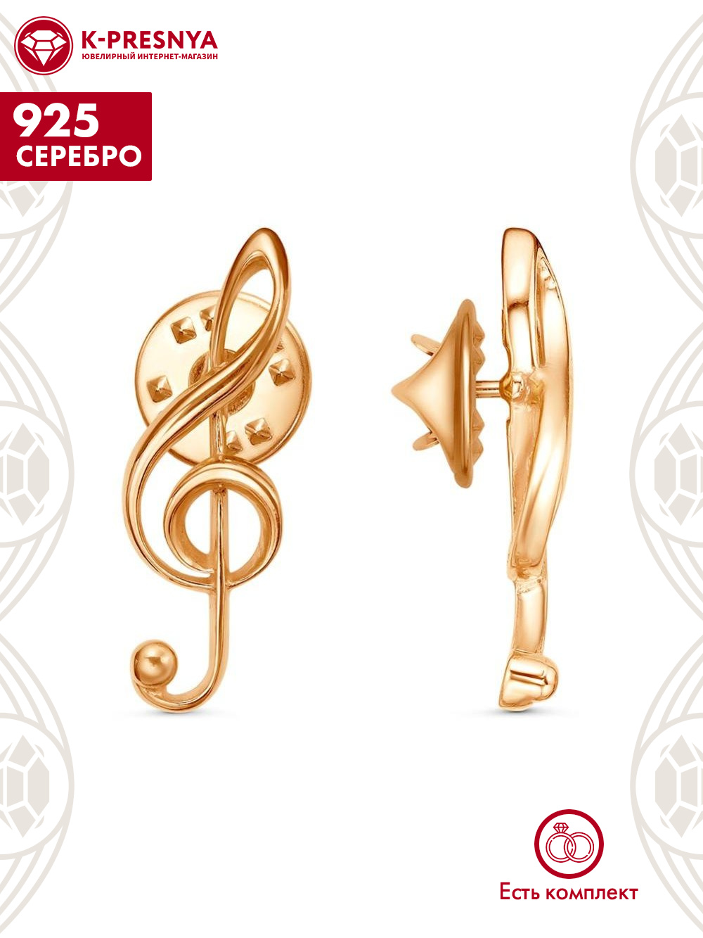 Брошь серебро 925 пробы, покрытие - золочение, без вставок