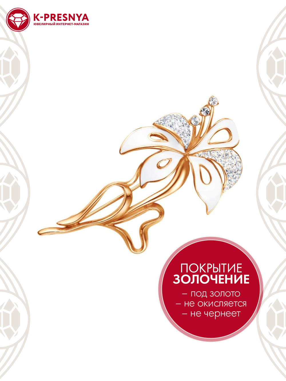 Брошь бижутерия, покрытие - золочение, отделка - эмаль, вставка - стекло ювелирное preciosa