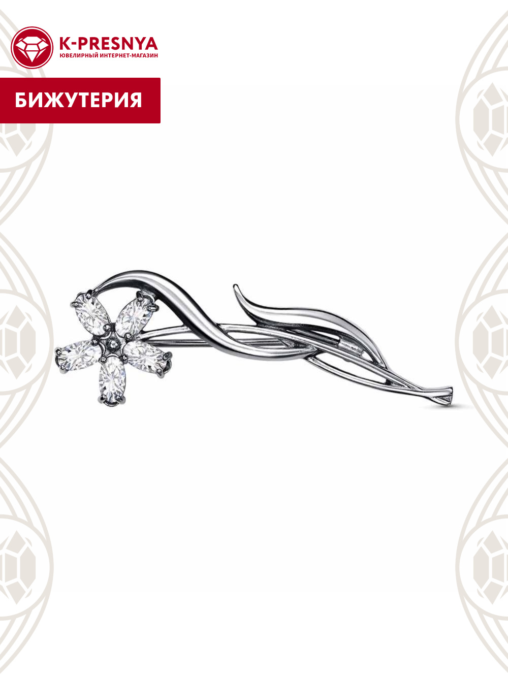 Брошь бижутерия, покрытие - серебрение с оксидированием, вставка - фианит (недрагоценный камень)