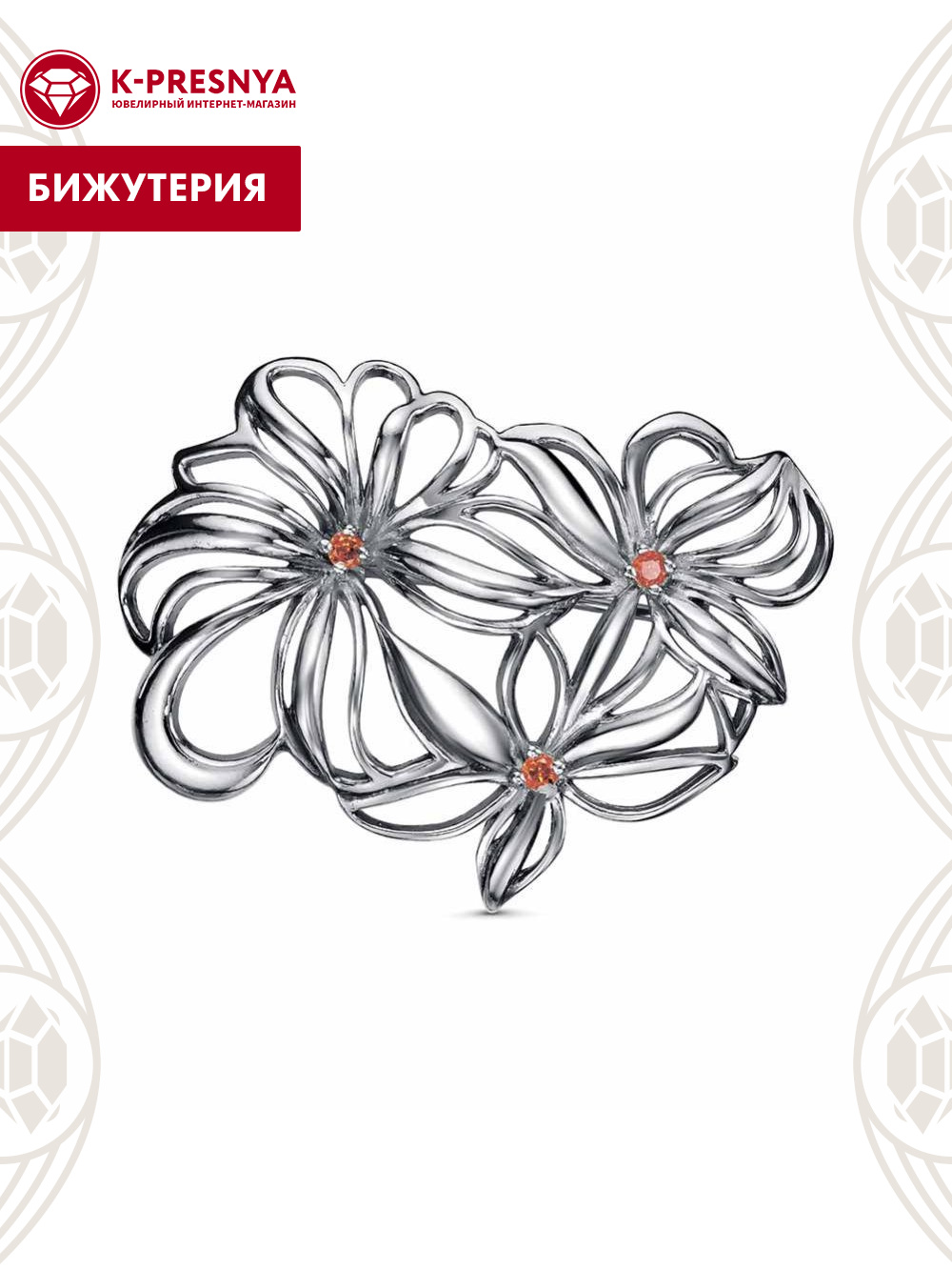 Брошь бижутерия, покрытие - серебрение с оксидированием, вставка - фианит (недрагоценный камень)
