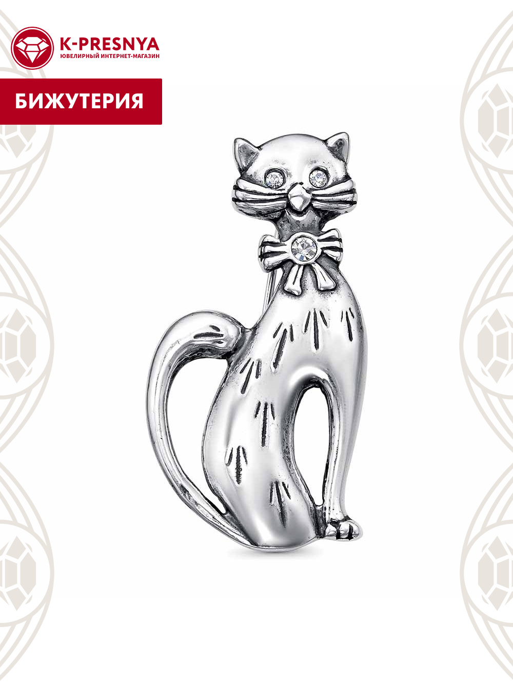 Брошь бижутерия, покрытие - серебрение с оксидированием, вставка - стекло ювелирное preciosa