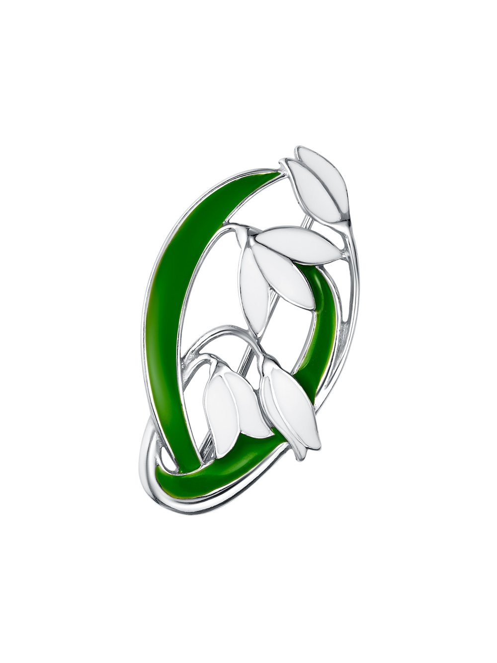 Брошь серебро 925 пробы, покрытие - родирование, отделка - эмаль, без вставок