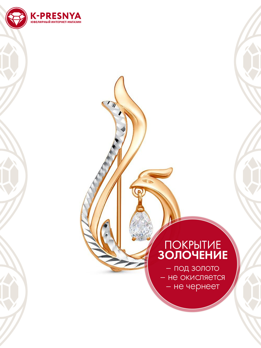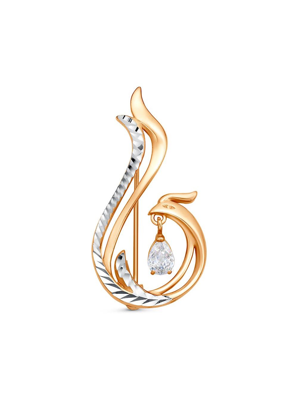 Брошь серебро 925 пробы, покрытие - золочение, отделка - алмазная грань, вставка - фианит (недрагоценный камень)
