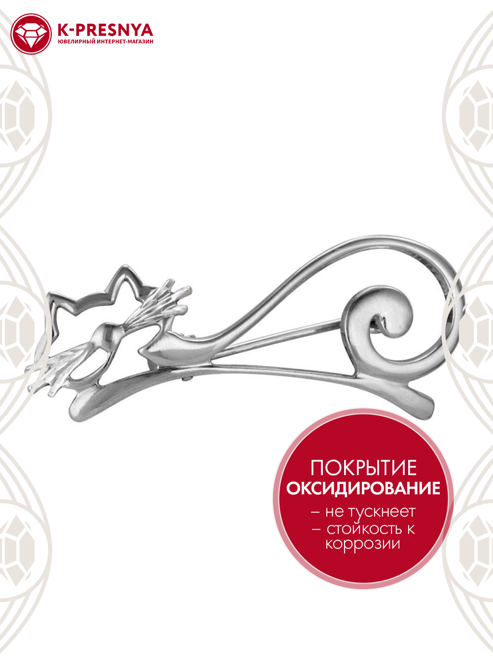 Брошь серебро 925 пробы, покрытие - оксидирование, отделка - алмазная грань, без вставок