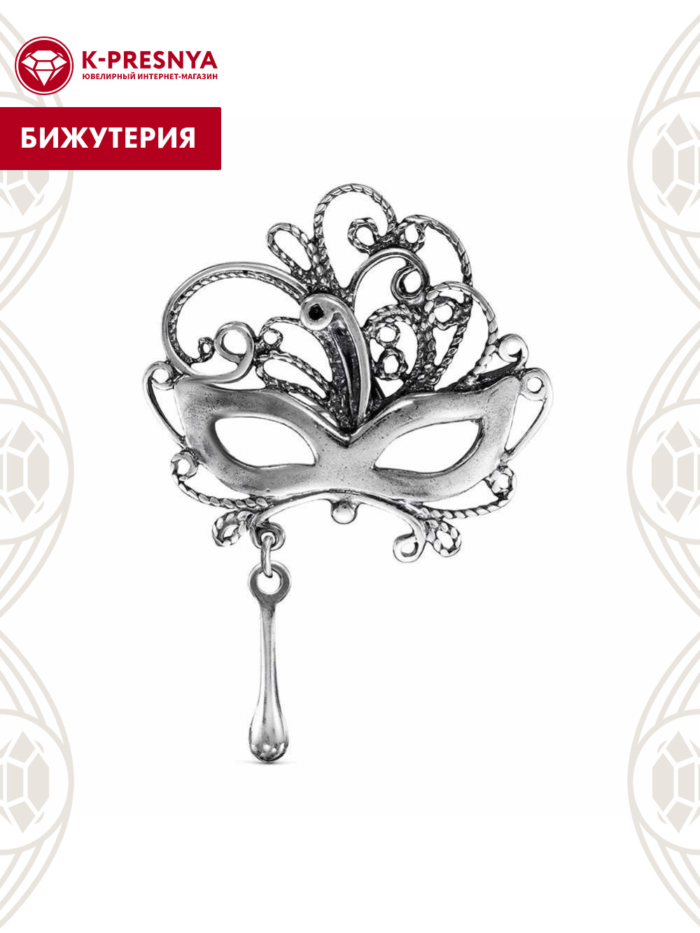 Брошь бижутерия, покрытие - серебрение с оксидированием, без вставок