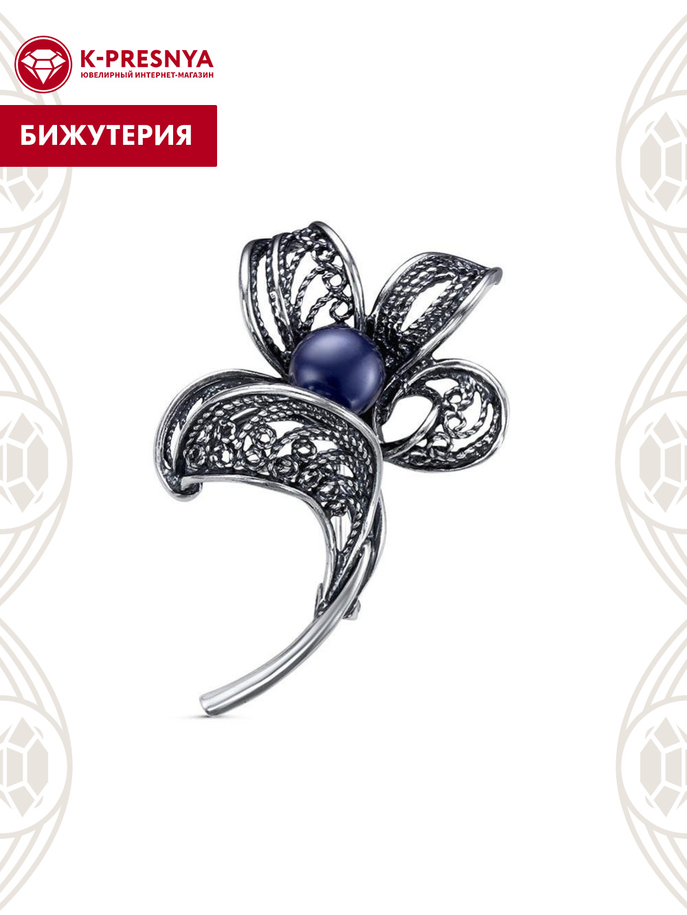 Брошь бижутерия, покрытие - серебрение с оксидированием, вставка - культивированный жемчуг