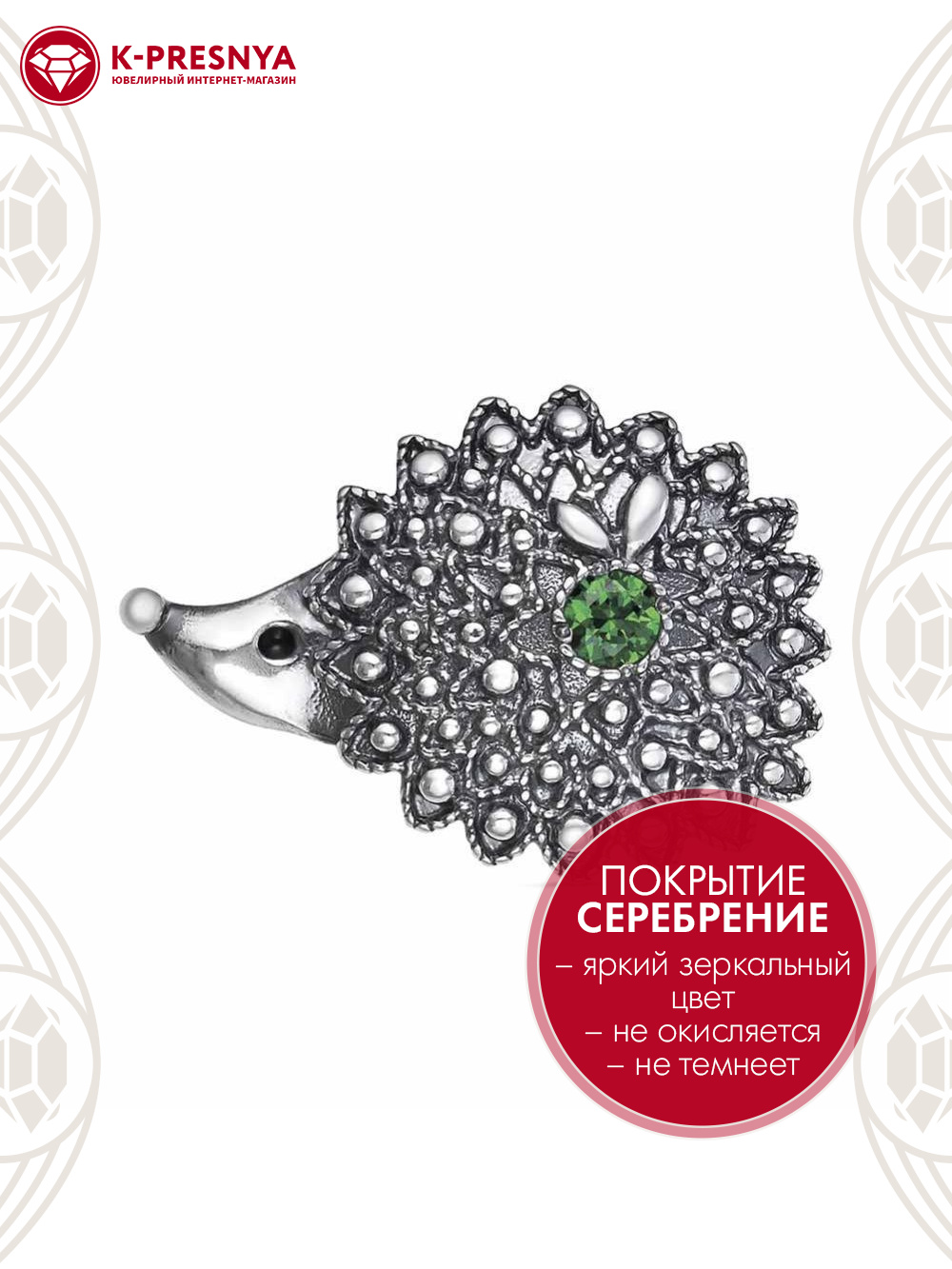 Брошь бижутерия, покрытие - серебрение с оксидированием, отделка - эмаль, вставка - искусственная шпинель