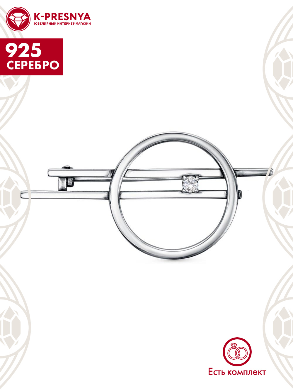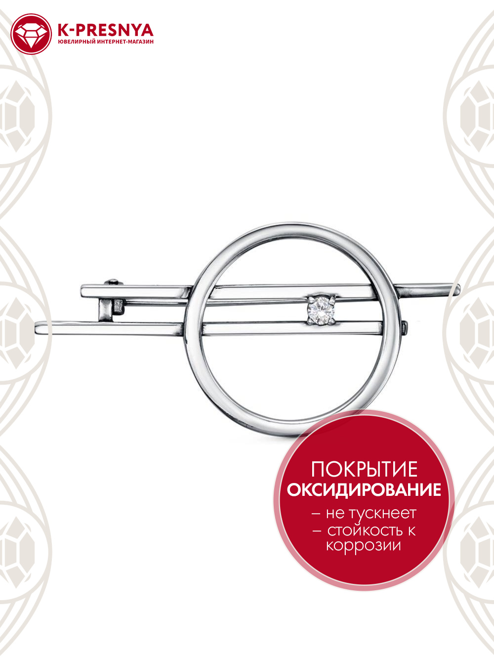 Брошь серебро 925 пробы, покрытие - оксидирование, вставка - фианит (недрагоценный камень)