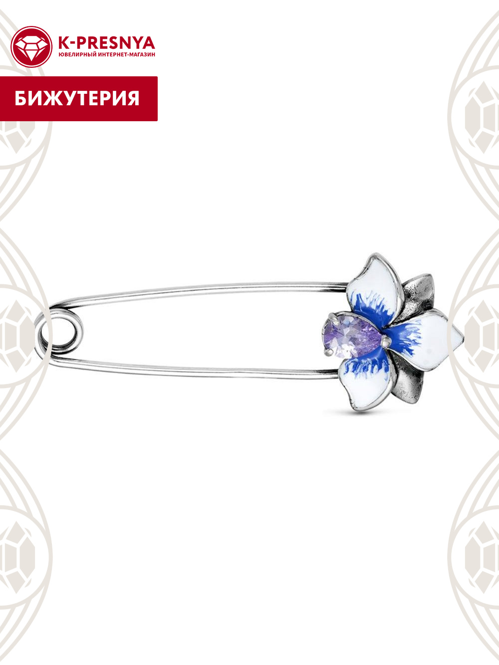 Брошь бижутерия, покрытие - серебрение с оксидированием, отделка - эмаль, вставка - фианит (недрагоценный камень)