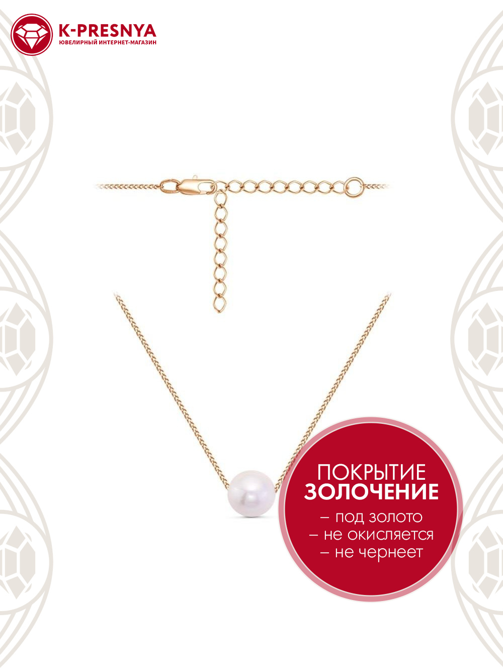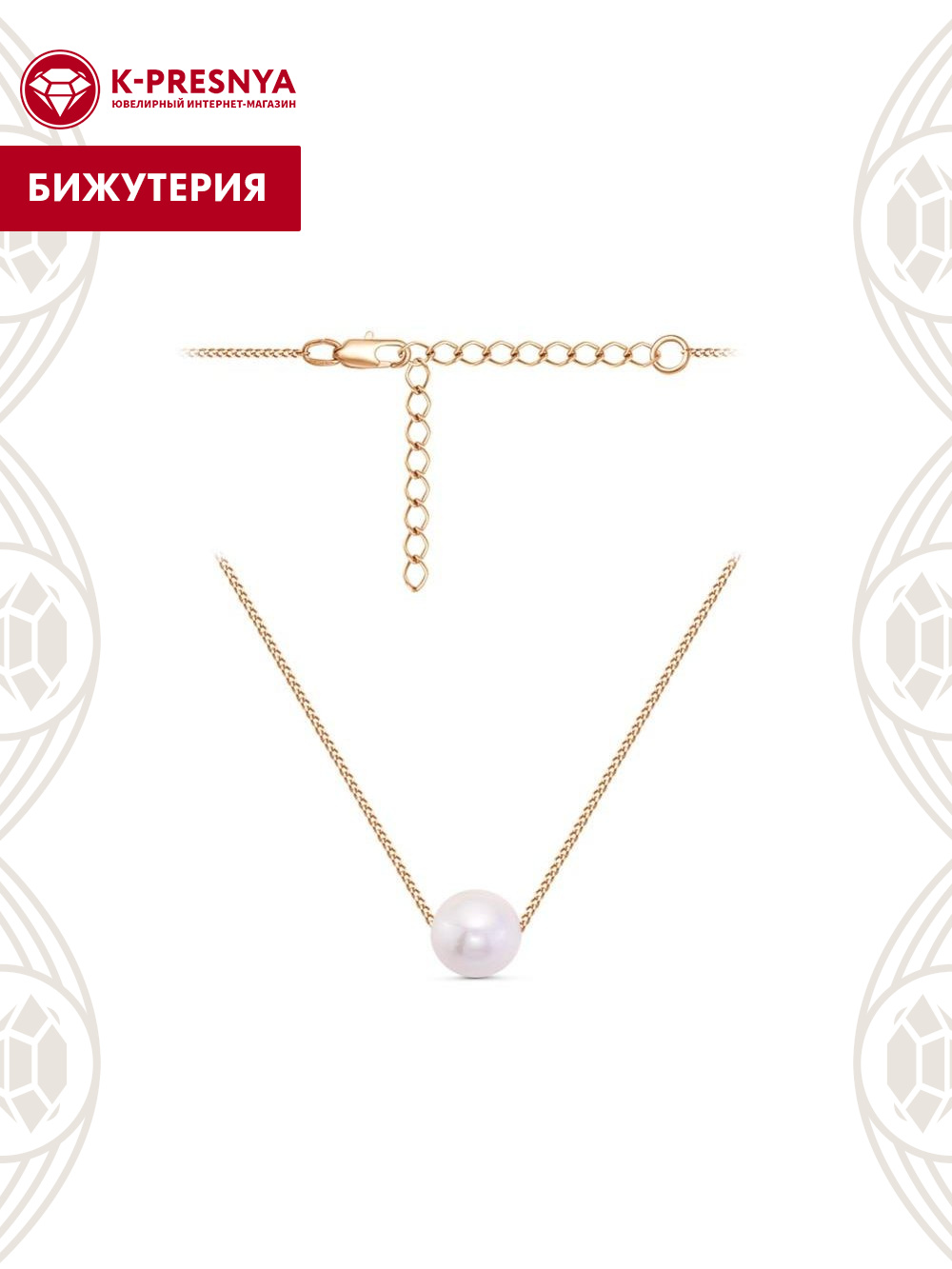 Колье бижутерия, покрытие - золочение, вставка - имитация жемчуга