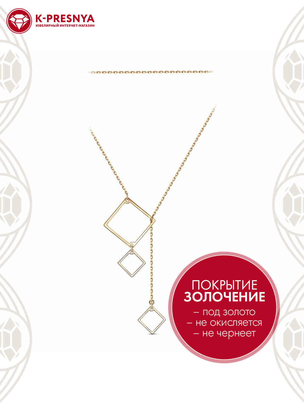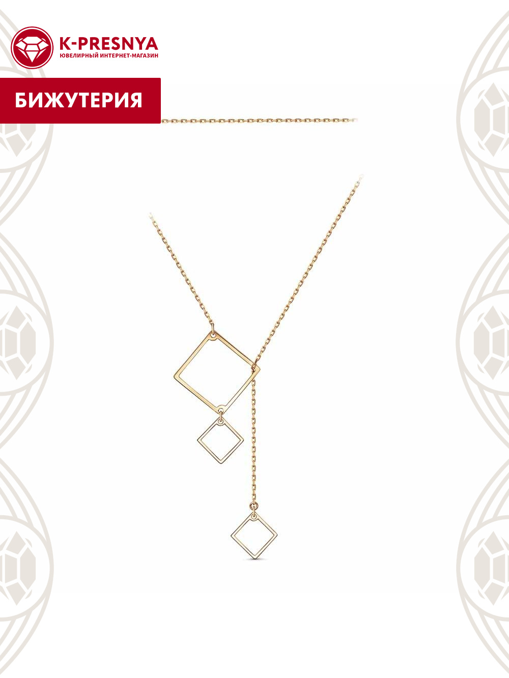 Колье бижутерия, покрытие - золочение, без вставок