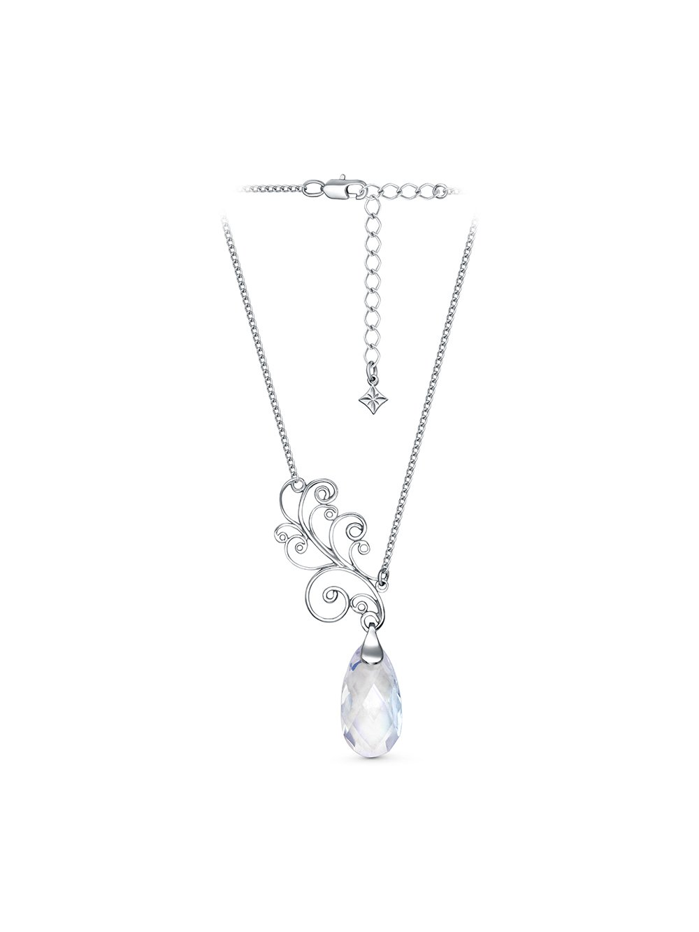 Колье серебро 925 пробы, покрытие - родирование, вставка - фианит (недрагоценный камень)