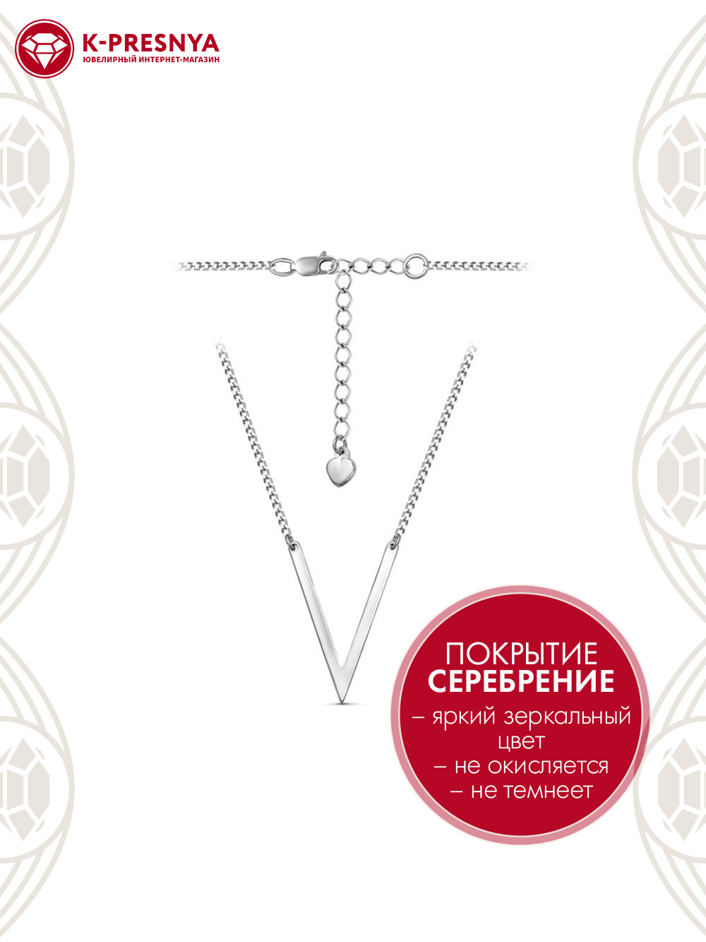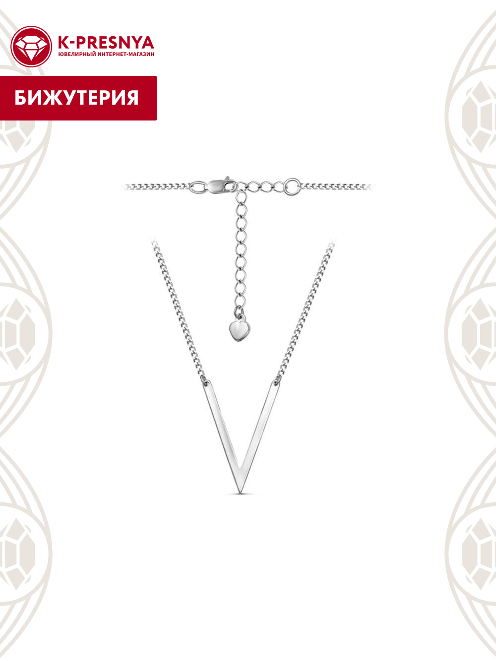 Колье длинной 450 мм с дополнительной цепочкой 50 мм, которая позволяет регулировать размер