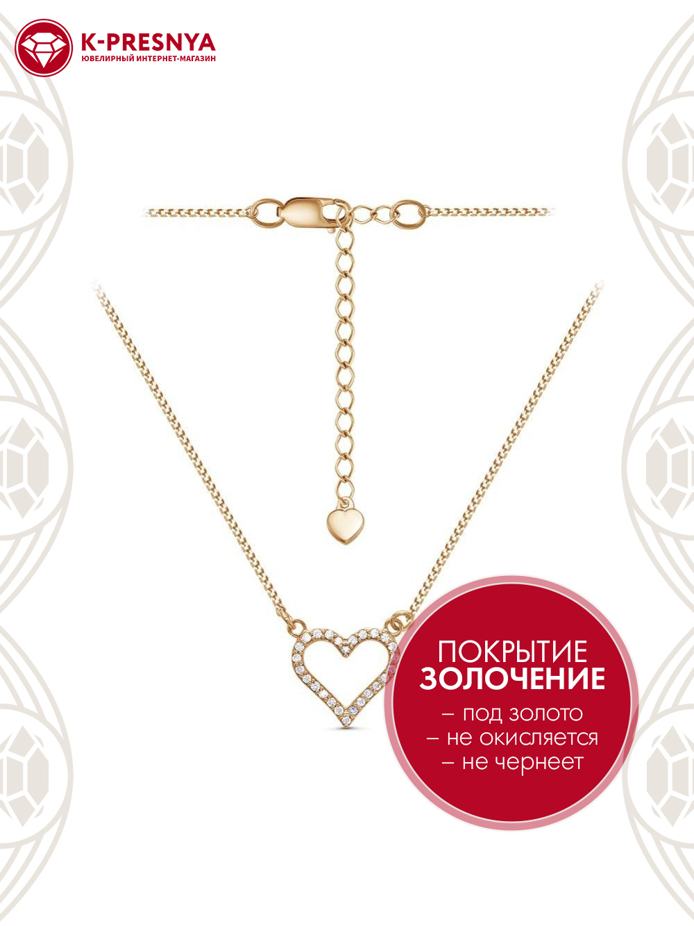 Колье с дополнительной цепочкой 50 мм, которая позволяет регулировать размер