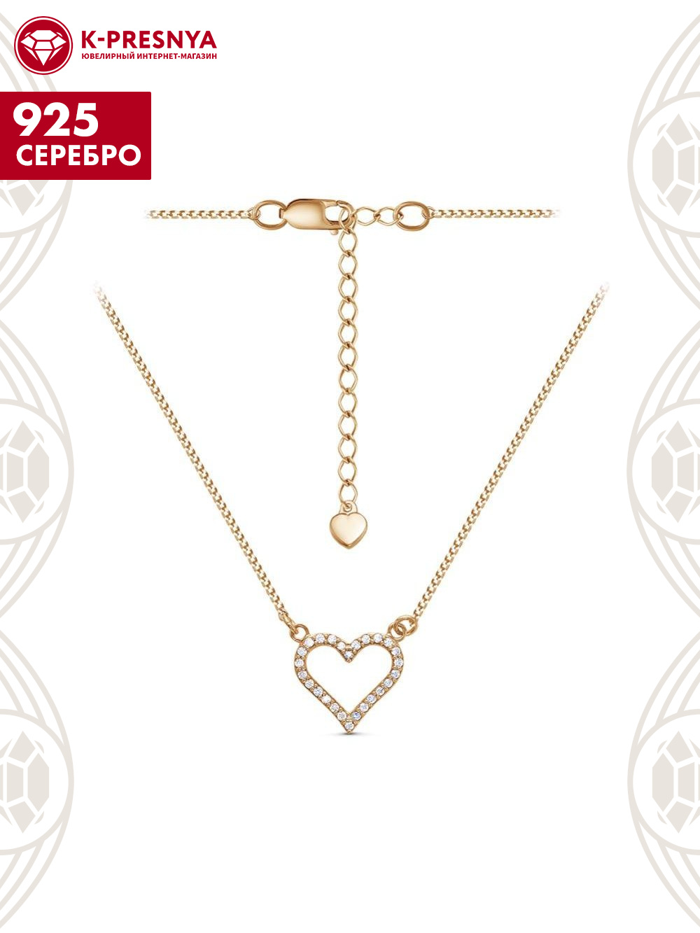Колье серебро 925 пробы, покрытие - золочение, вставка - фианит (недрагоценный камень)
