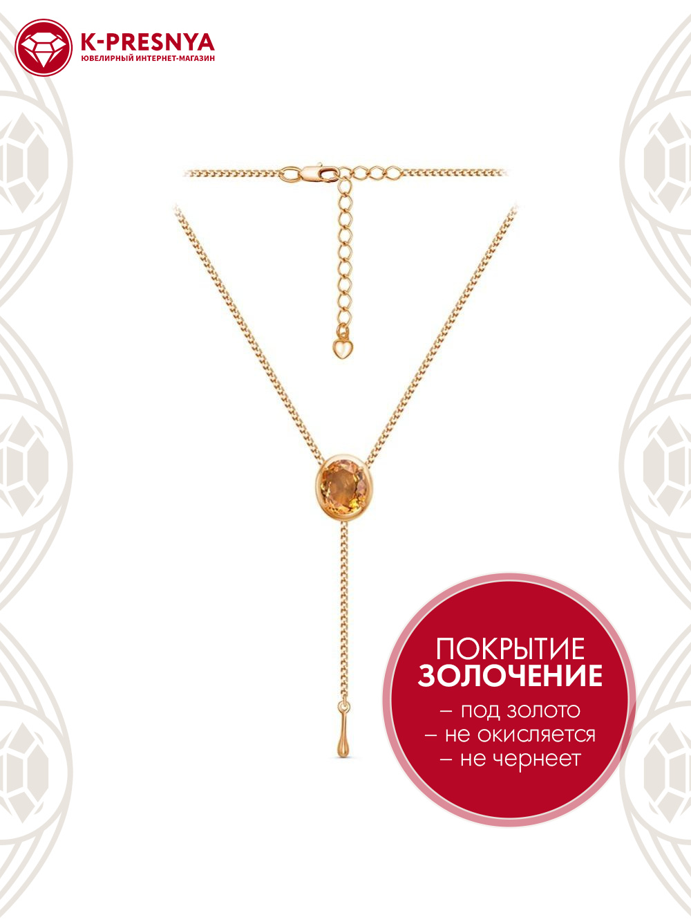 Колье бижутерия, покрытие - золочение, вставка - искусственный султанит