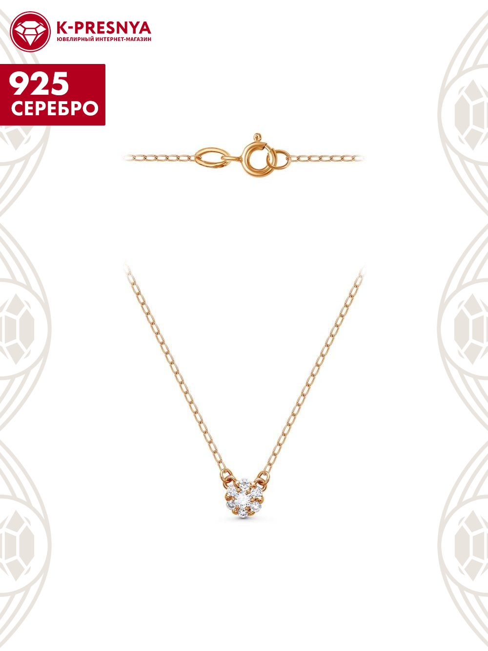 Колье серебро 925 пробы, покрытие - золочение, вставка - фианит (недрагоценный камень)