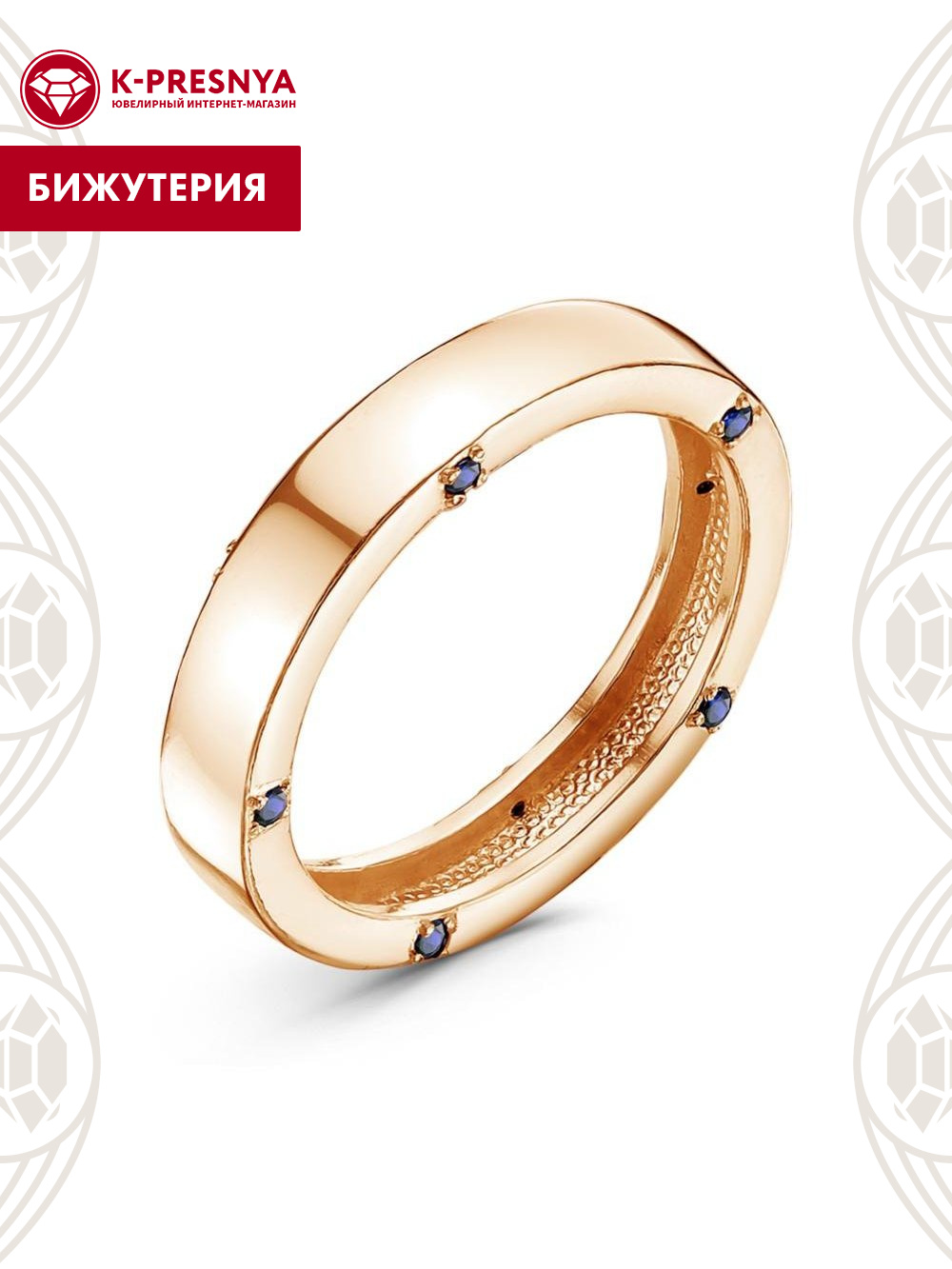 Кольцо бижутерия, покрытие - золочение, вставка - искусственная шпинель