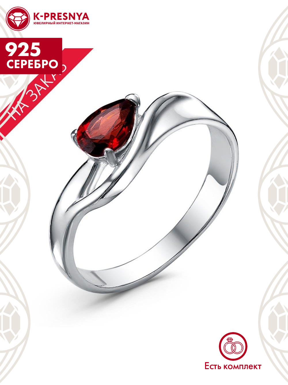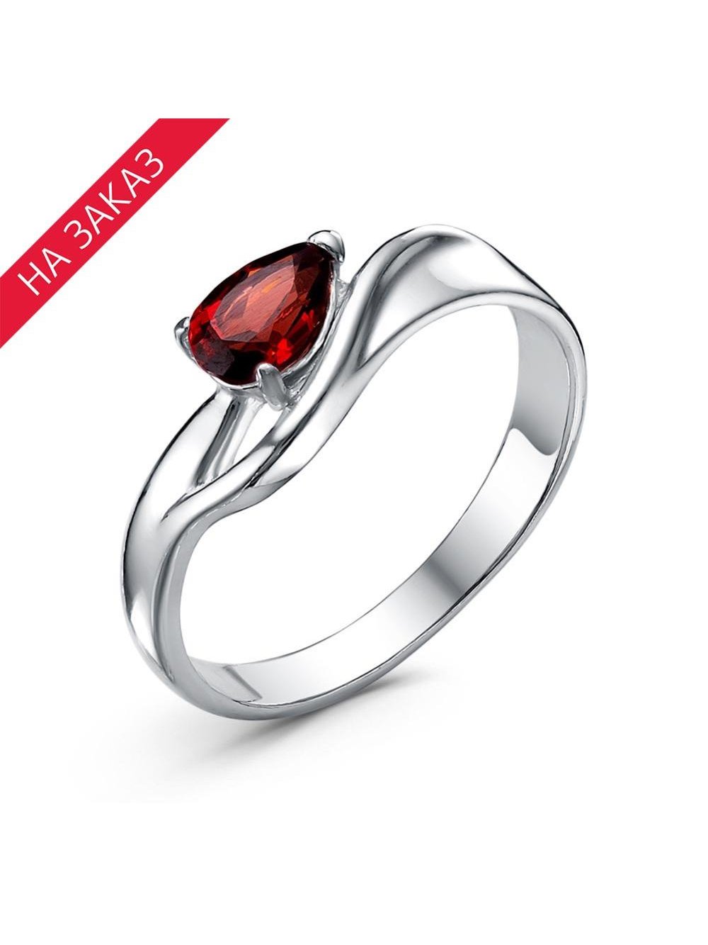 Кольцо серебро 925 пробы, покрытие - родирование, вставка - гранат (полудрагоценный камень)