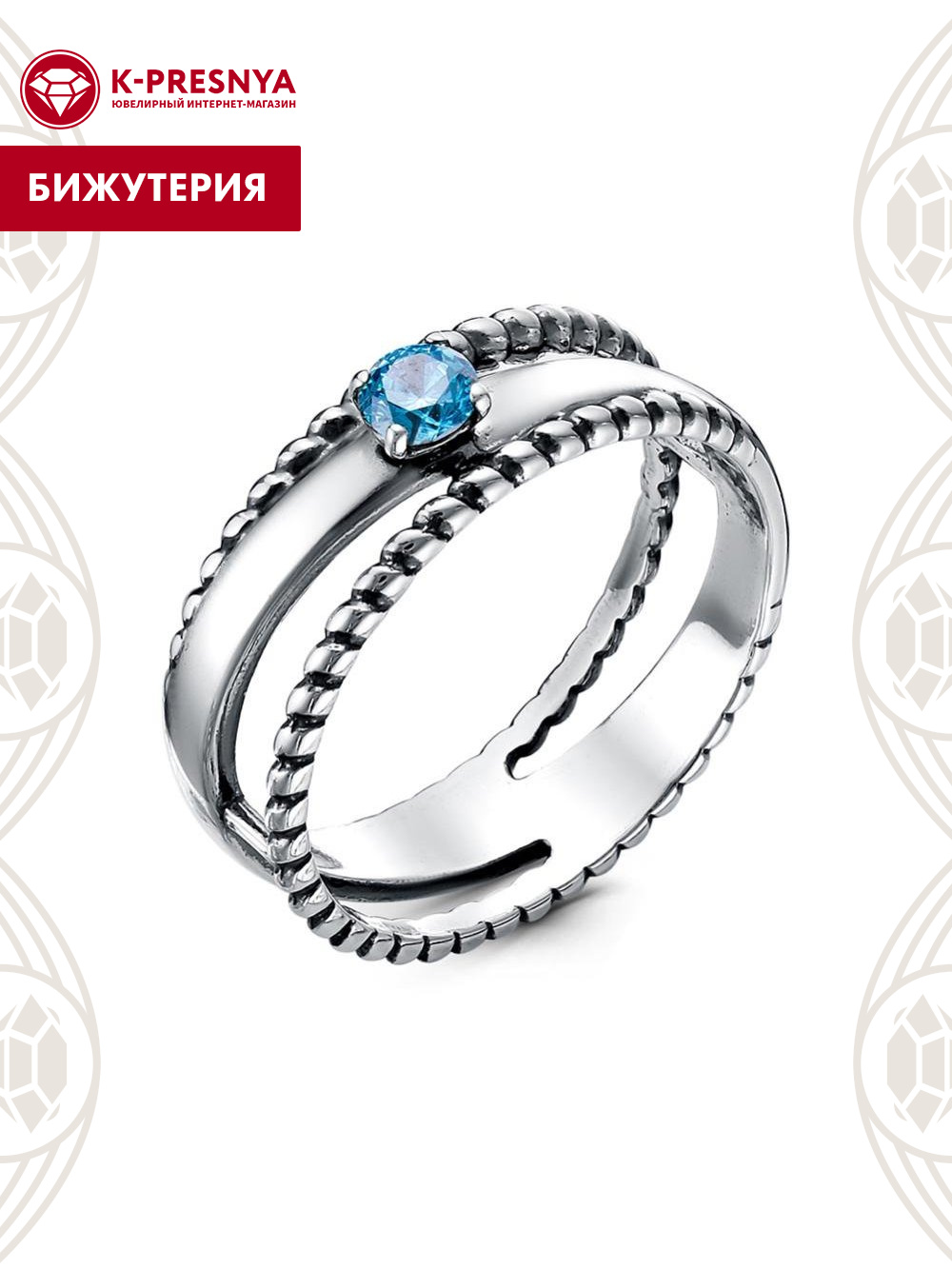 Кольцо бижутерия, покрытие - серебрение с оксидированием, вставка - фианит (недрагоценный камень)