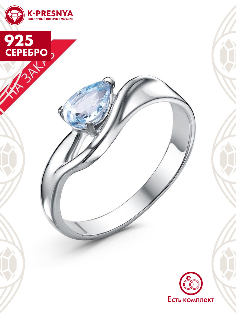 Кольцо серебро 925 пробы, покрытие - родирование, вставка - голубой топаз (полудрагоценный камень)