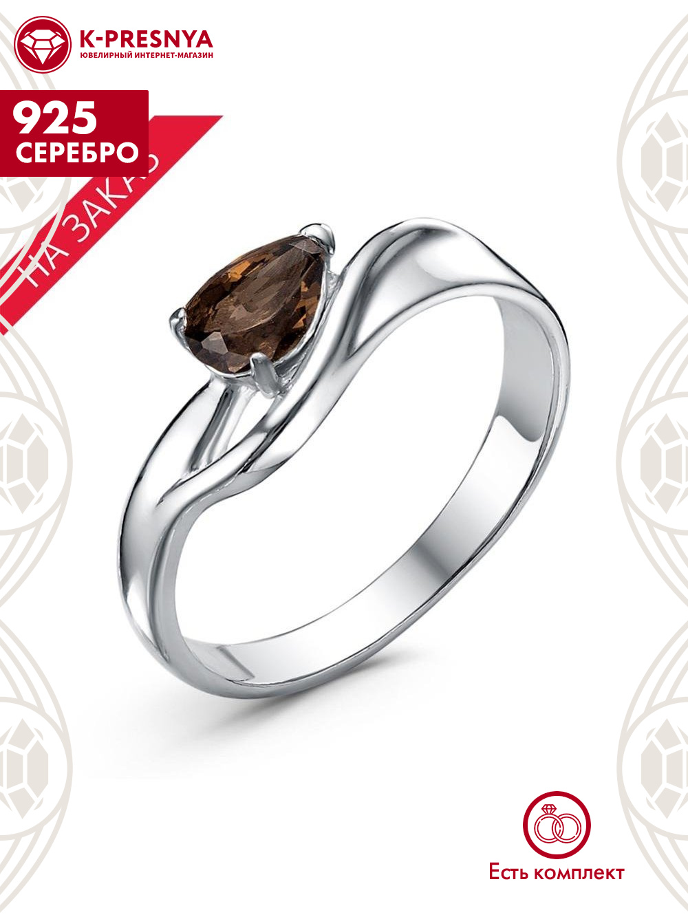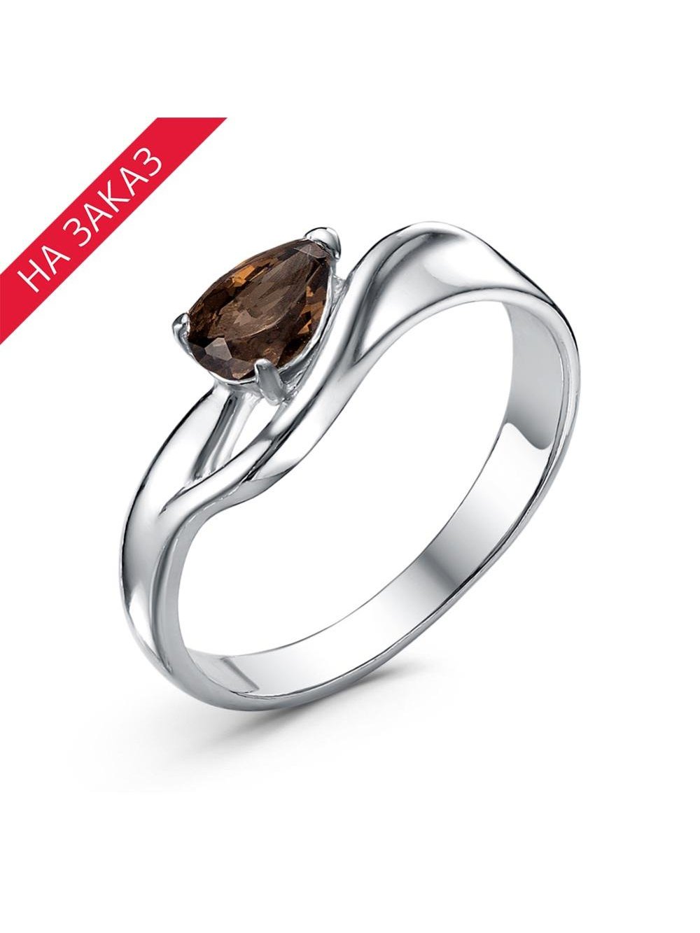 Кольцо серебро 925 пробы, покрытие - родирование, вставка - дымчатый кварц