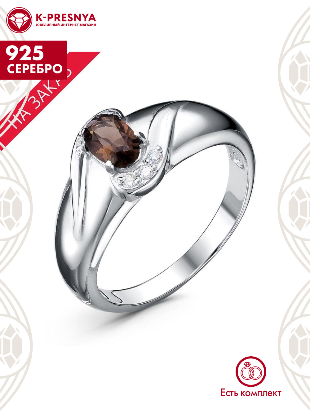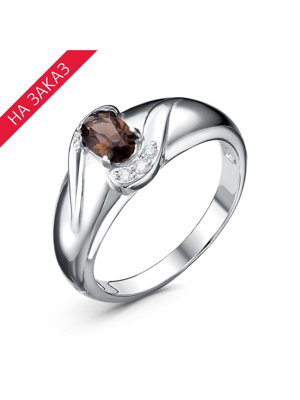 Кольцо серебро 925 пробы, покрытие - родирование, вставка - дымчатый кварц, фианит (недрагоценный камень)