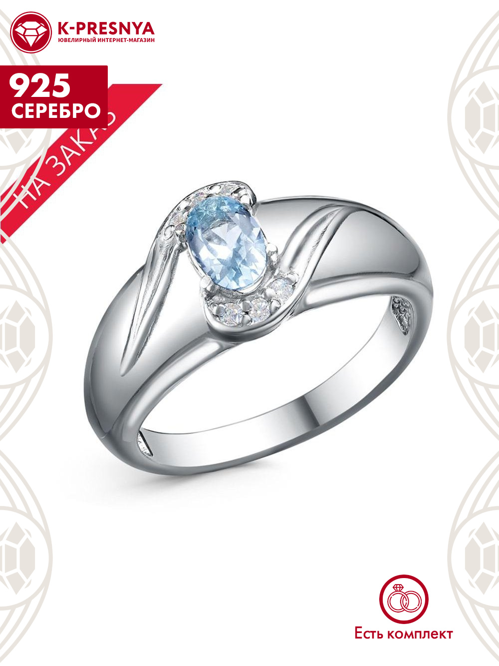 Кольцо серебро 925 пробы, покрытие - родирование