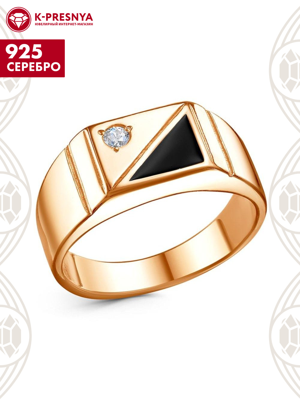 Кольцо серебро 925 пробы, покрытие - золочение, отделка - эмаль, вставка - фианит (недрагоценный камень)