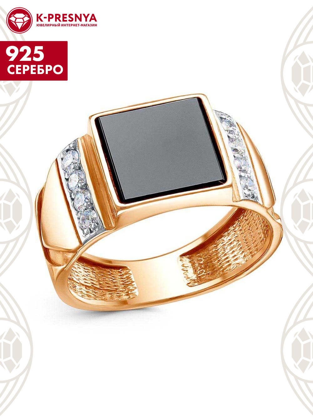 Кольцо серебро 925 пробы, покрытие - золочение, выборочное родирование