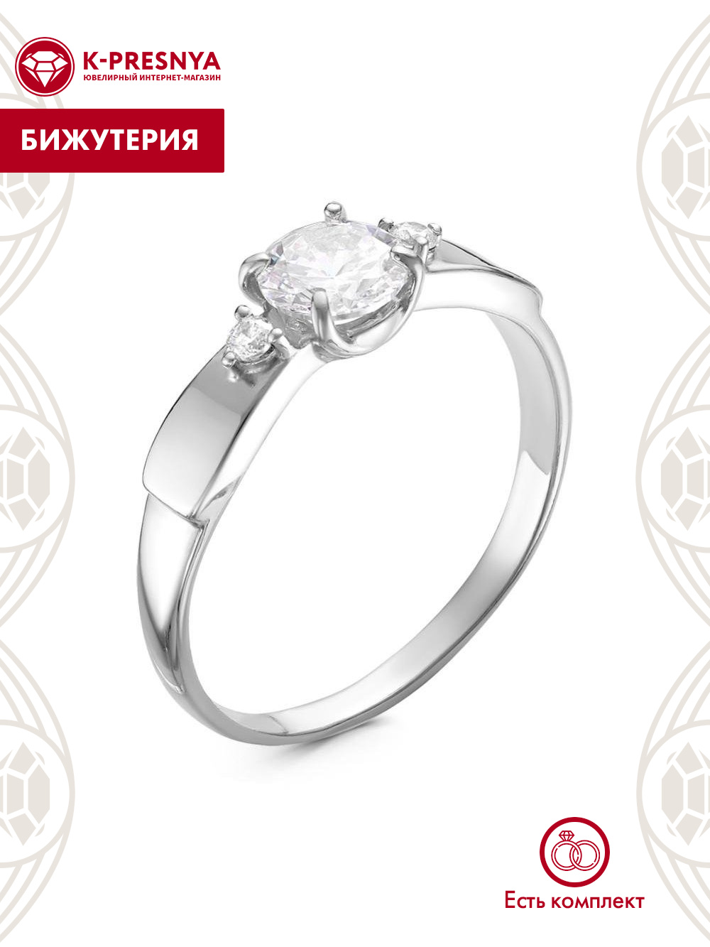 Кольцо бижутерия, покрытие - платинирование, вставка - фианит (недрагоценный камень)