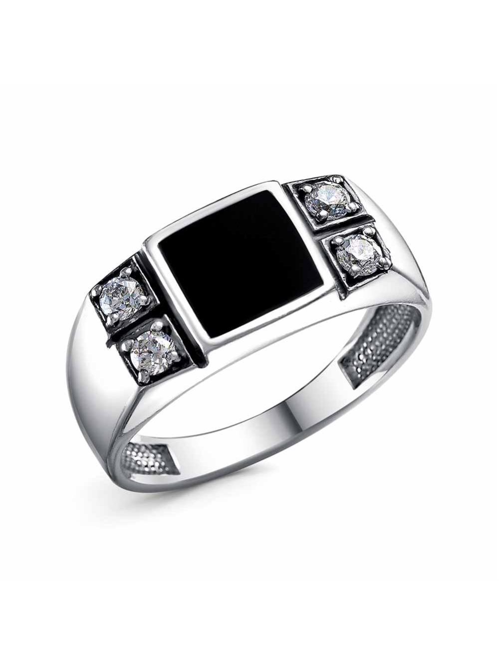 Кольцо серебро 925 пробы, покрытие - оксидирование, отделка - эмаль, вставка - фианит (недрагоценный камень)
