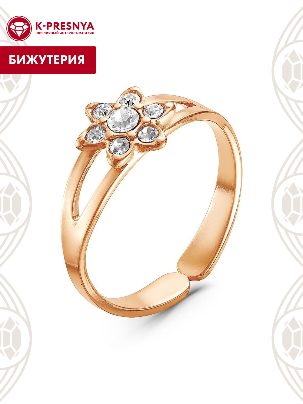 Кольцо бижутерия, покрытие - золочение, вставка - стекло ювелирное preciosa