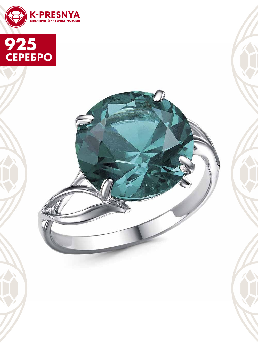 Кольцо серебро 925 пробы, покрытие - родирование, вставка - ситалл собственной огранки