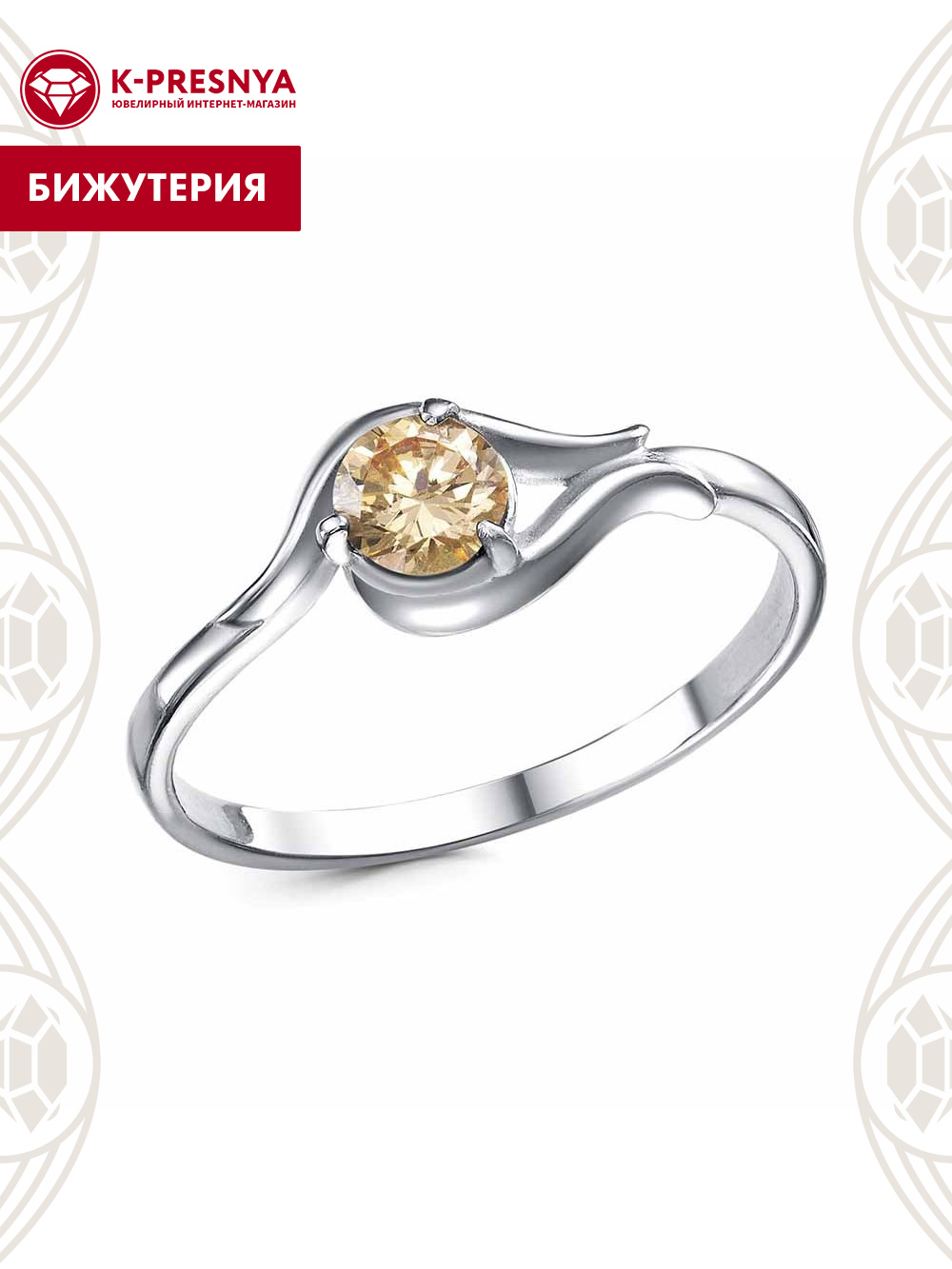 Кольцо бижутерия, покрытие - платинирование, вставка - фианит (недрагоценный камень)