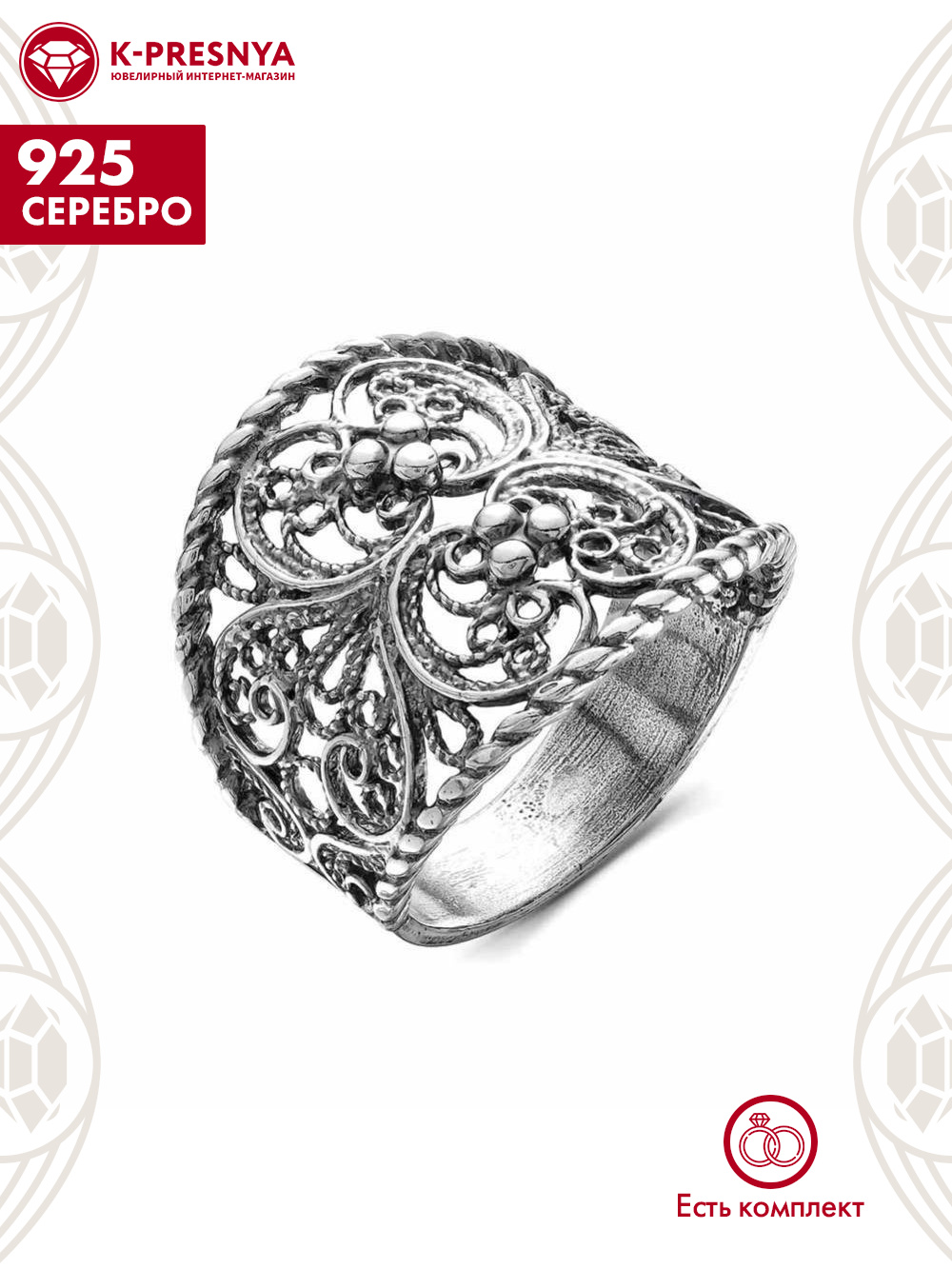 Кольцо серебро 925 пробы, покрытие - оксидирование, без вставок