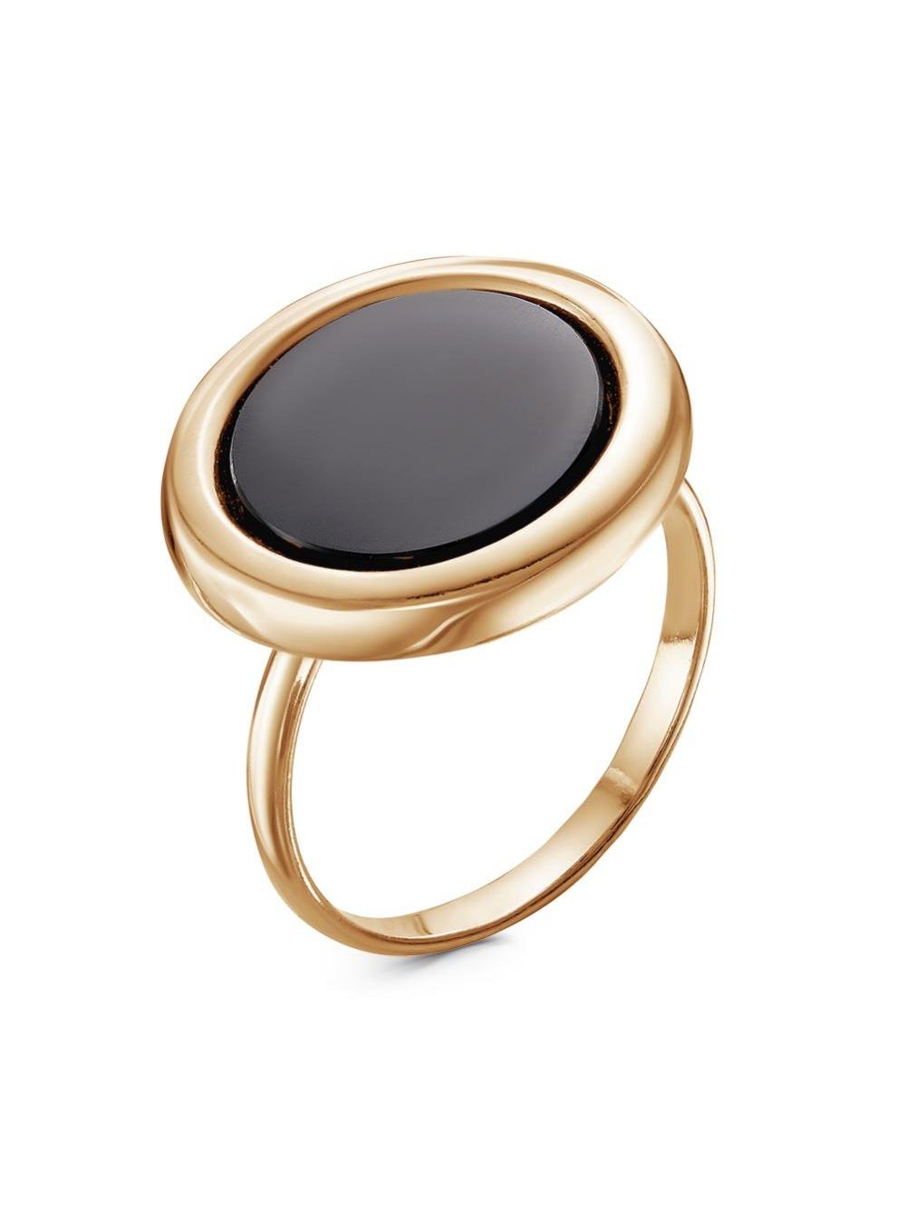 Кольцо серебро 925 пробы, покрытие - золочение, вставка - искусственный агат черный